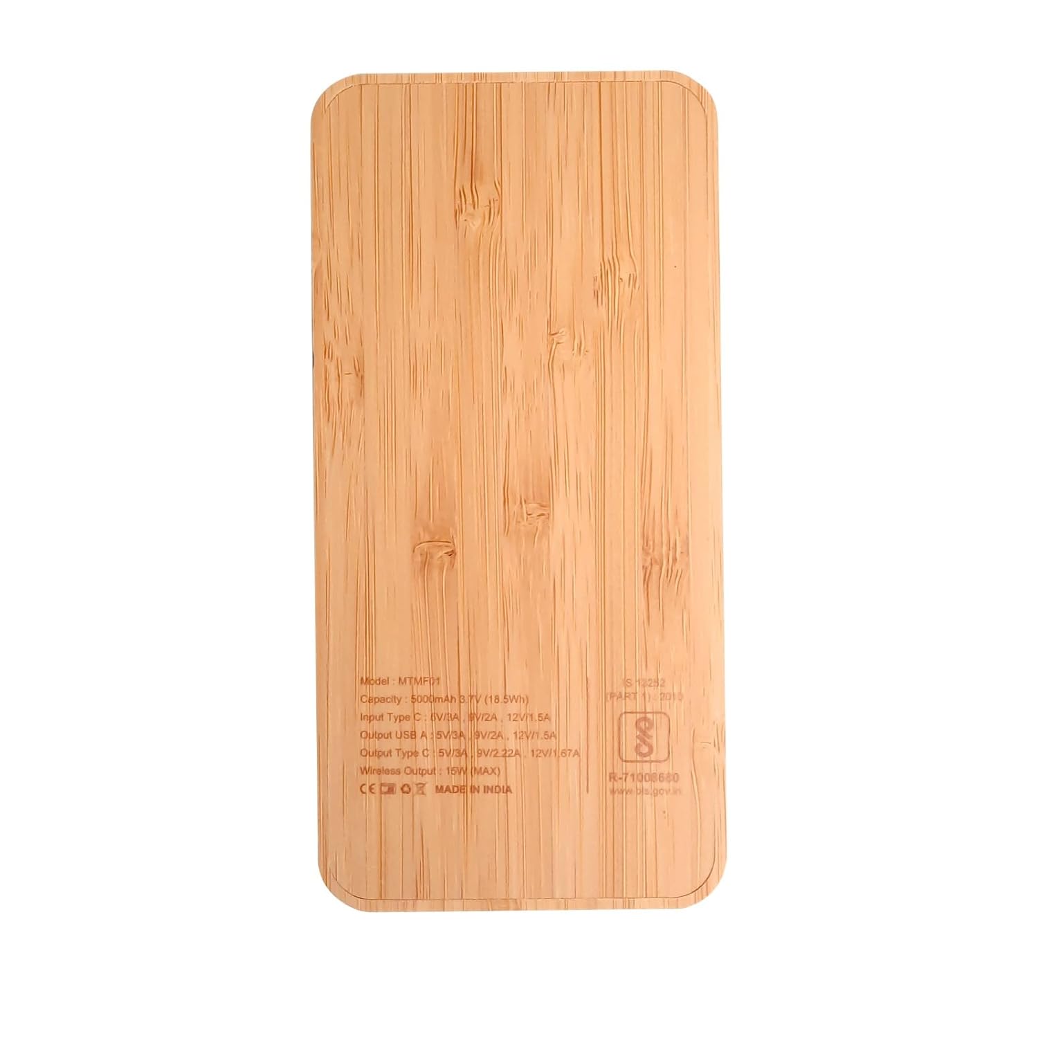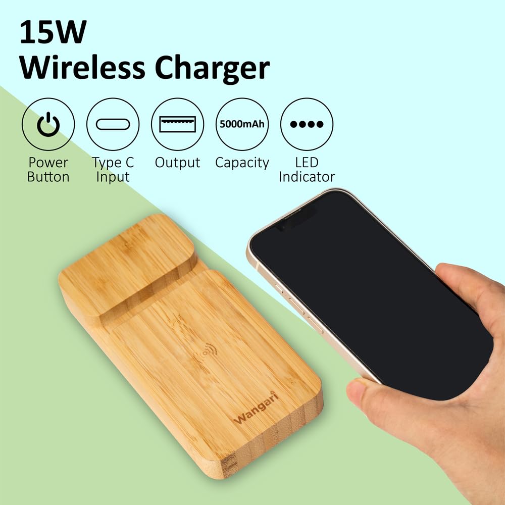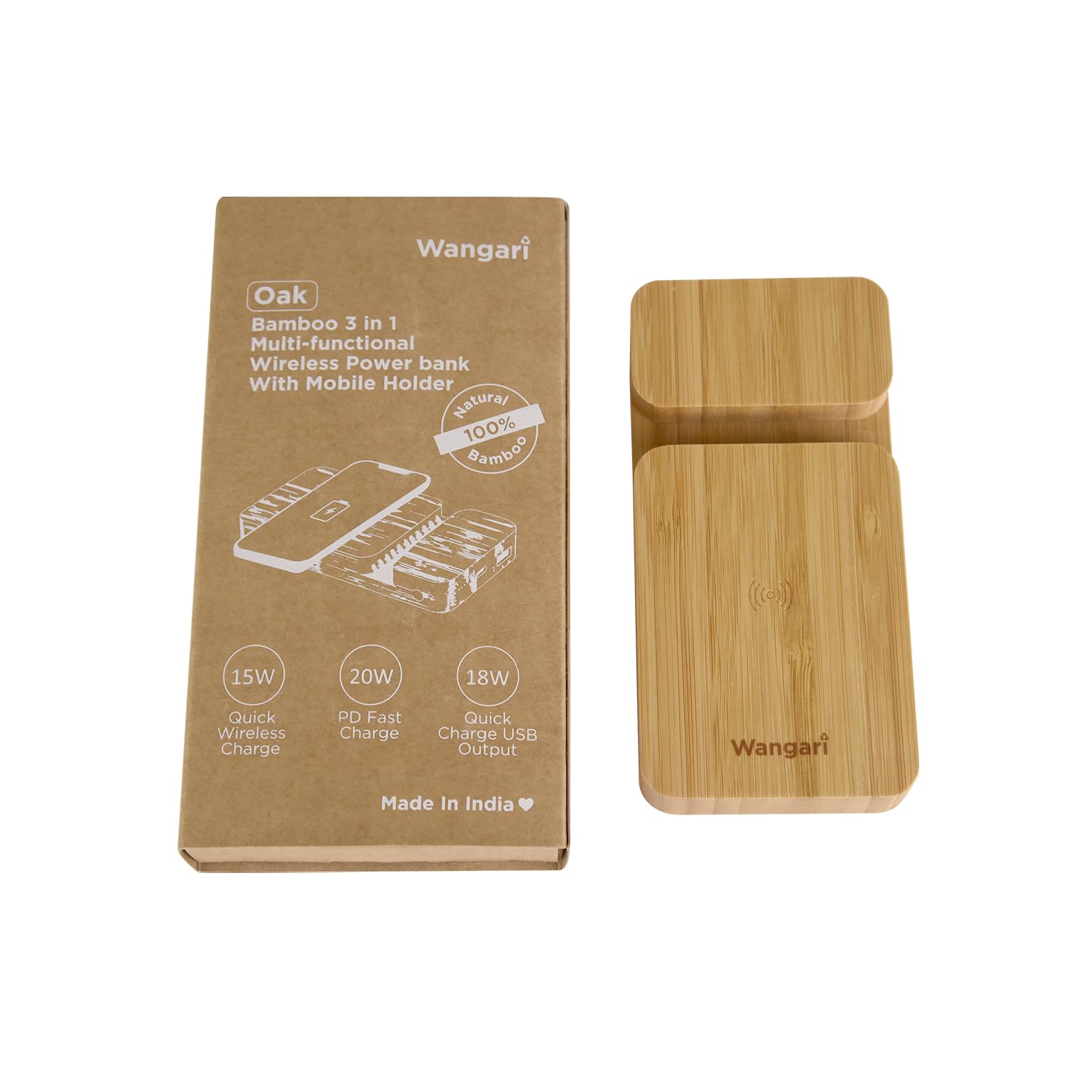 Wangari Oak 2 In1 Wireless Power Bank with Phone Stand | 5000mAh Wireless Power Bank | Bamboo Wood | Fast Charging | Portable Charger