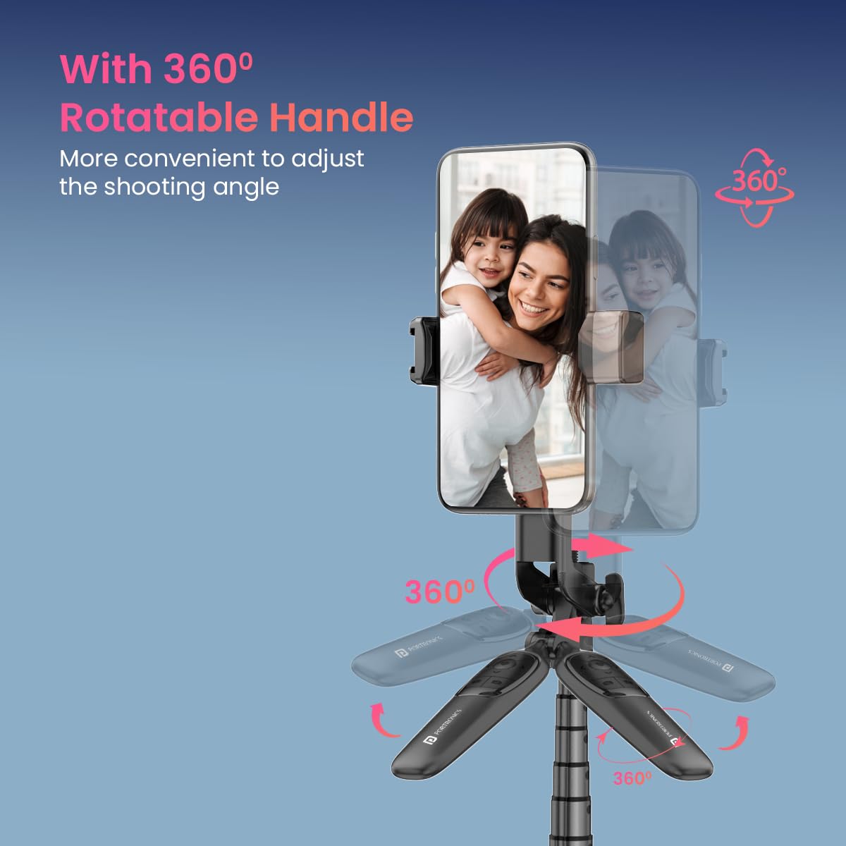 Portronics Lumistick Pro Smart Selfie Stick with 360 Degree Rotation, 10 M Bluetooth Range, 1600 mm Extension Rod, 3 Light Modes for iPhone/Mi/OnePlus/Samsung/Oppo/Vivo and All Phones(Black)